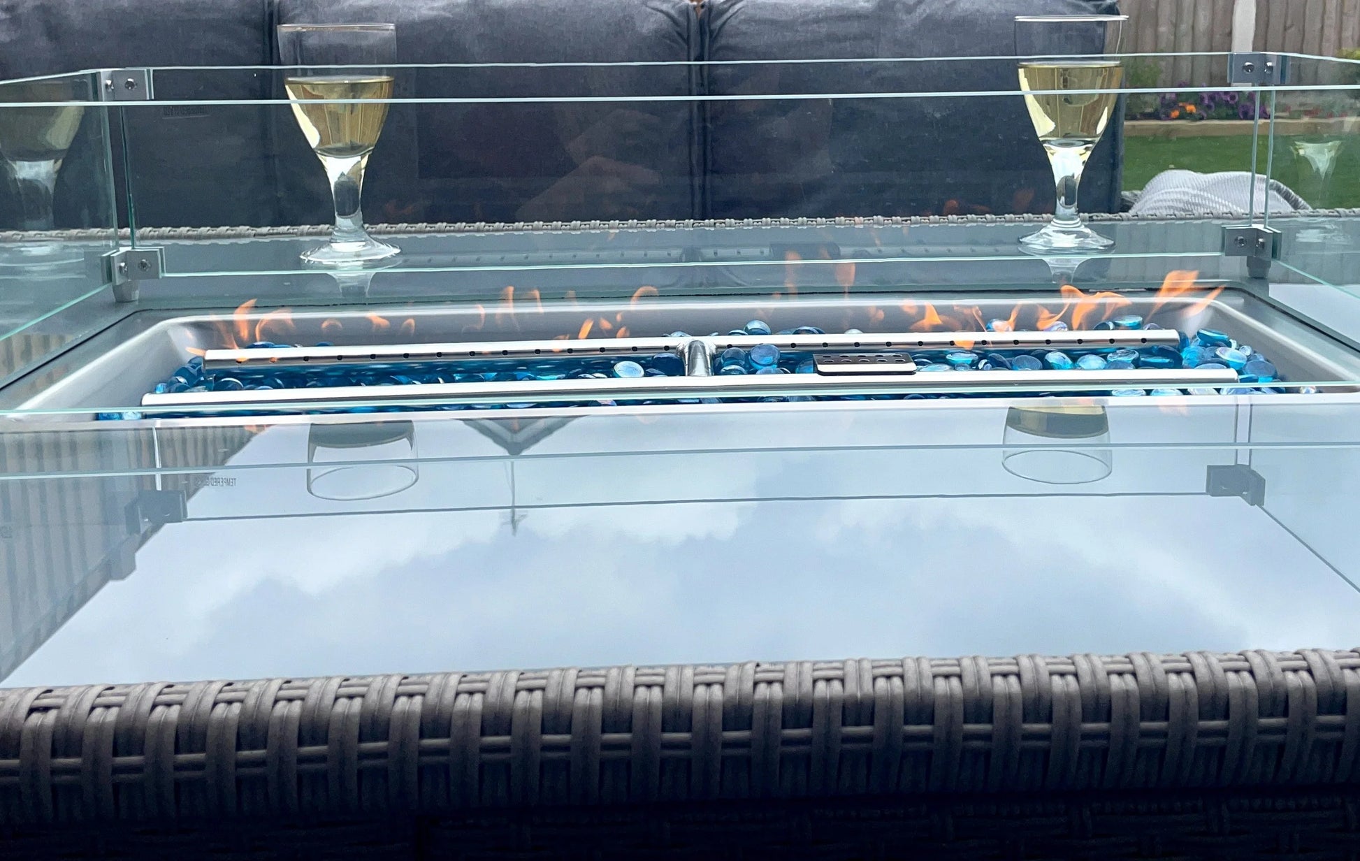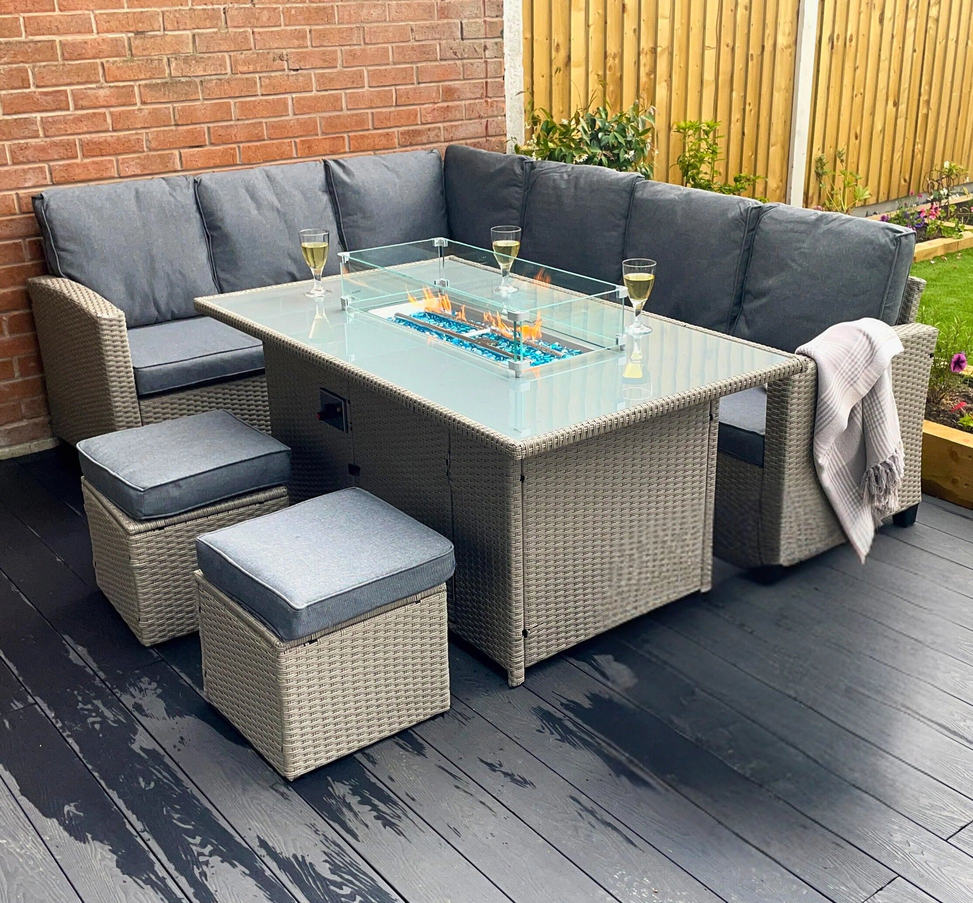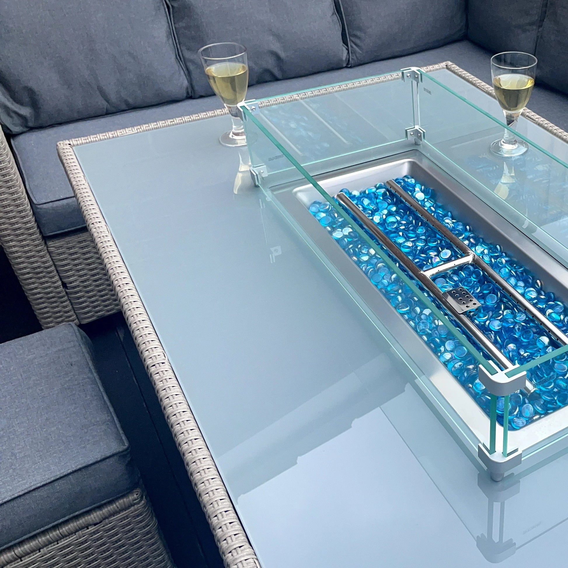 The Conwy 8 Seat Corner Gas Firepit Rattan Dining Set