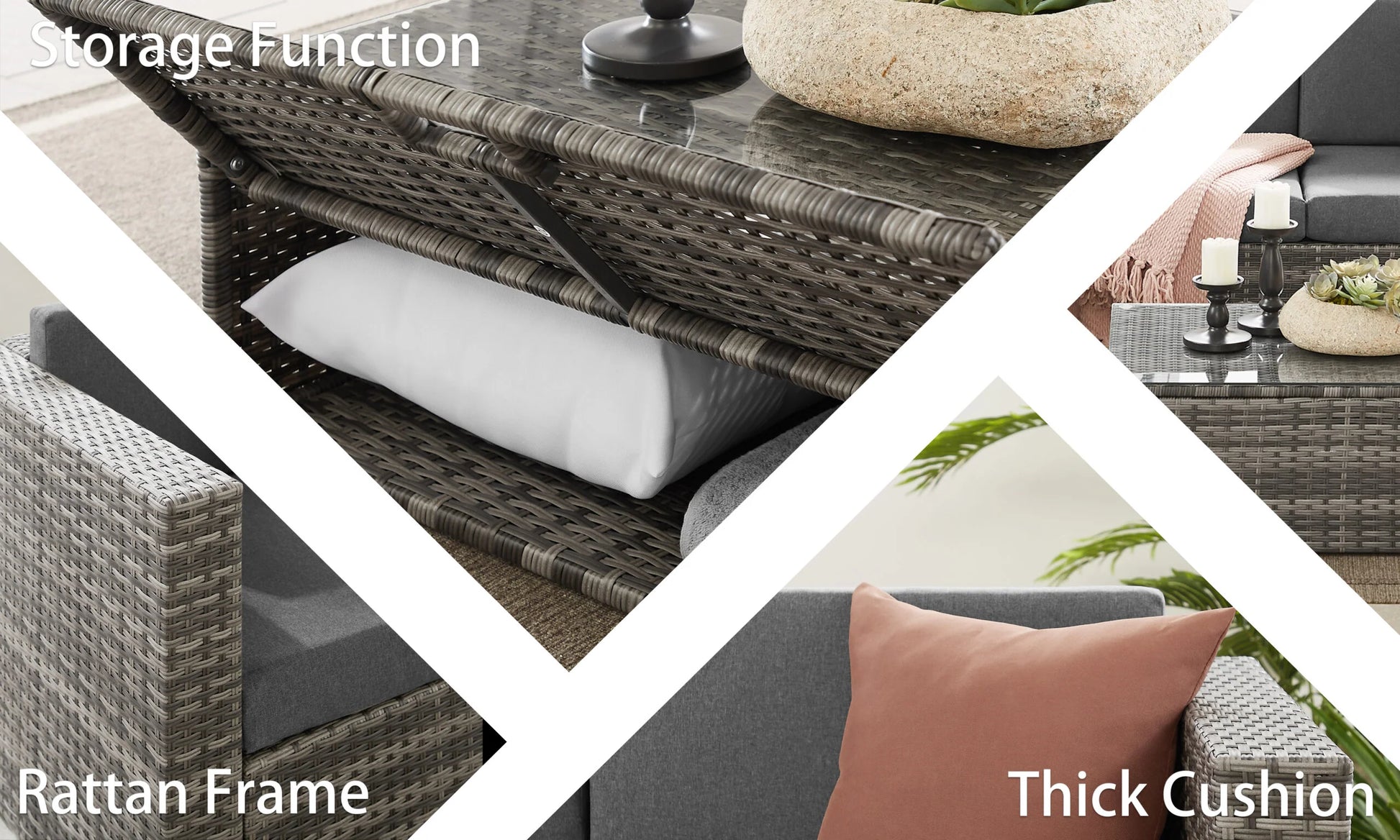The Tatton Grey Rattan Garden Furniture 6 Seat Corner Sofa and Coffee Table Patio Set
